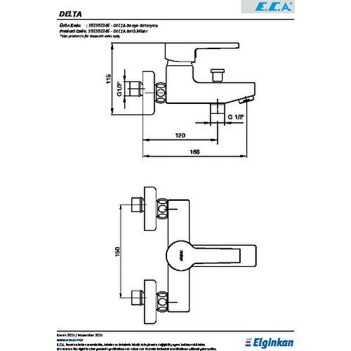 Bilgi Al: ECA Ankastre Banyo/Duş Bataryası Sıva Üstü Grubu 2 Yollu Krom-102167234H-KDE