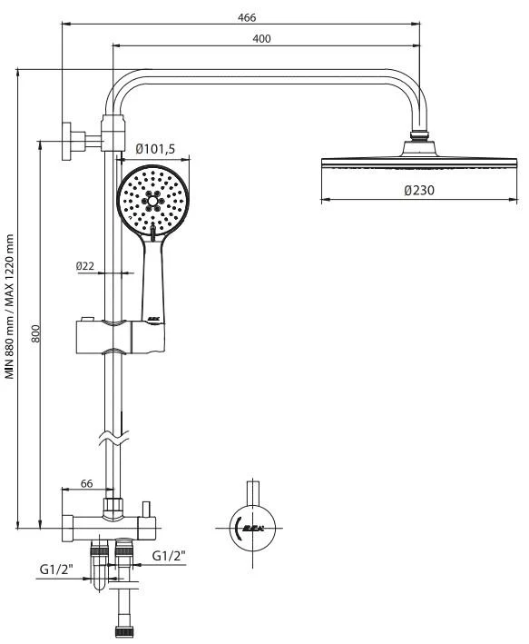 duş barı çapı: 22 mm