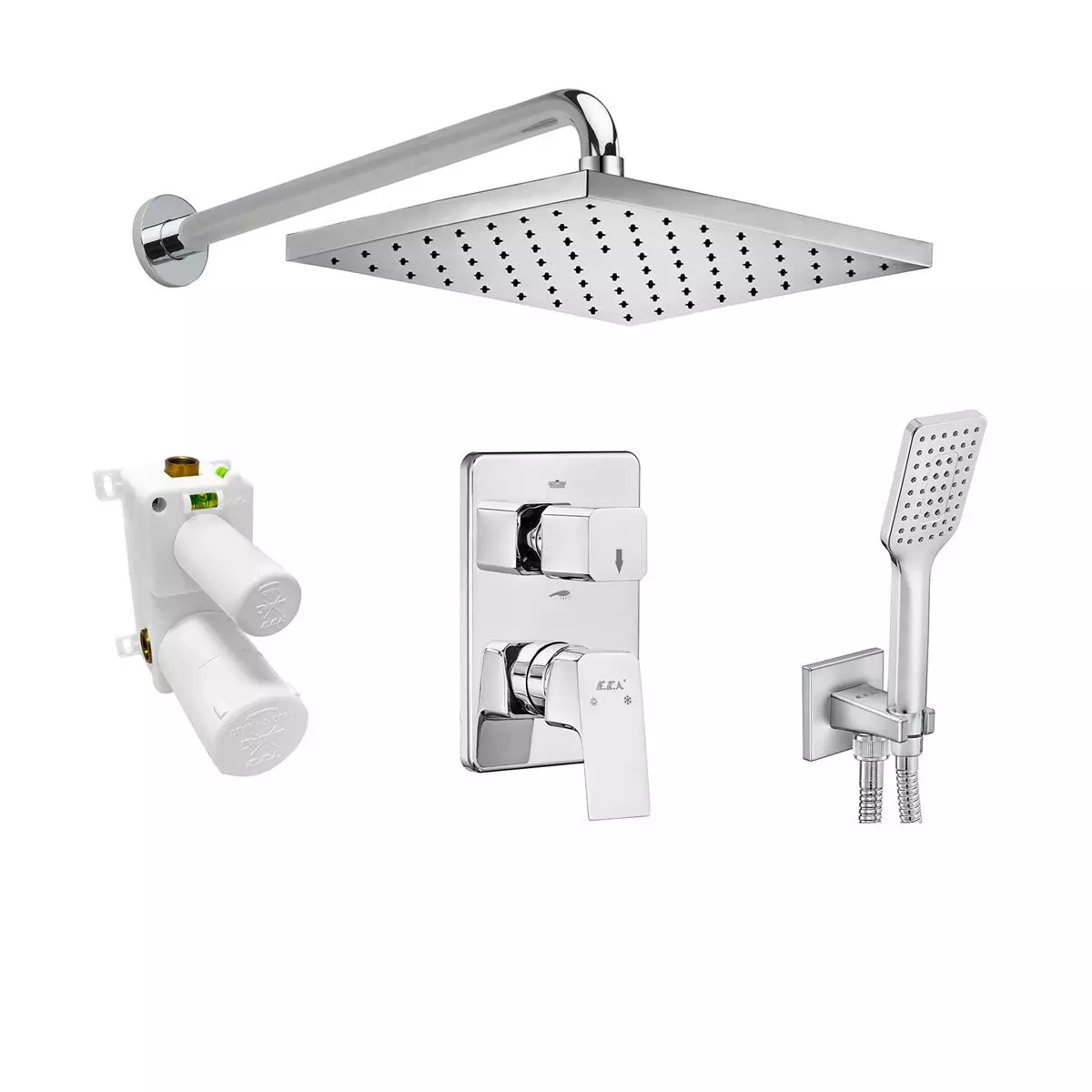 Kutu İçeriği: 1 Adet El Duşu, 1 Adet Mafsal, 1 Adet Duş Spirali (150 cm.)Özellikler: Dolanmayan SS304 Duş Spirali (Pirinç Somunlu), Abs El Duşu, Abs Mafsal