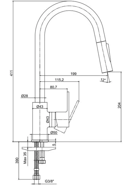 Özellikler: Krom Kaplı SS304 Boru (Ø24), Dolanmayan SS304 Duş Spirali (Pirinç Somunlu), Abs El Duşu, Abs...